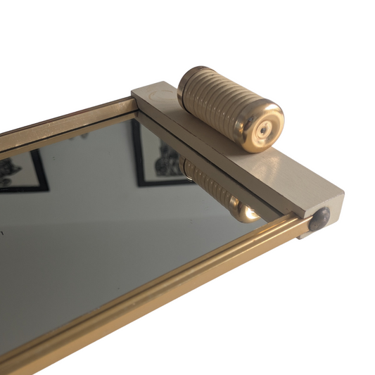 Plateau Miroir Ovale Art Déco 1930s – Laiton et peinture couleur ivoire Pièce Vintage Authentique