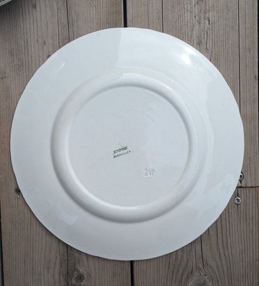 Lot de 4 Grandes Assiettes Plates Badonviller - Modèle Empire Terre de Fer Vert/Blanc