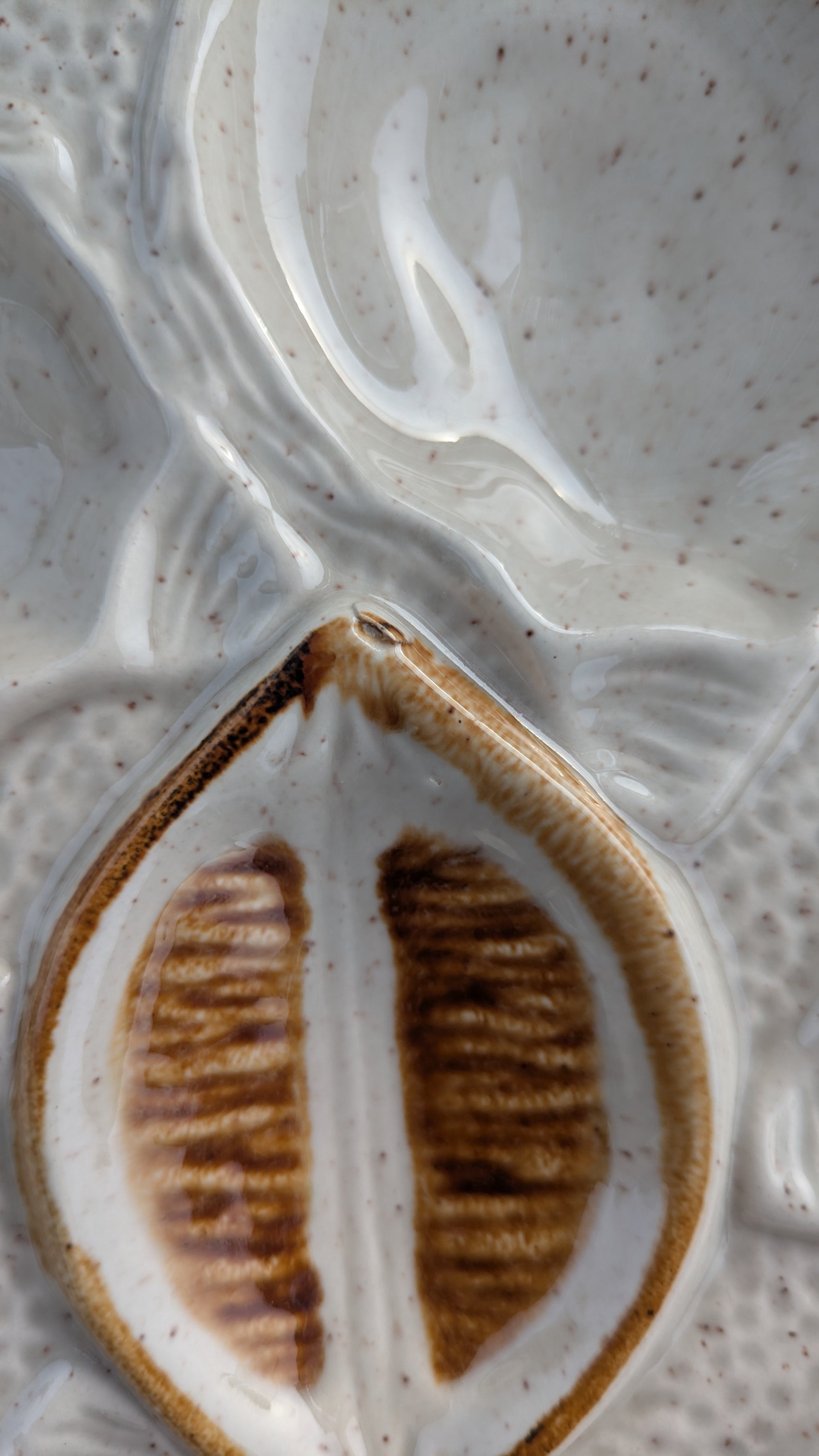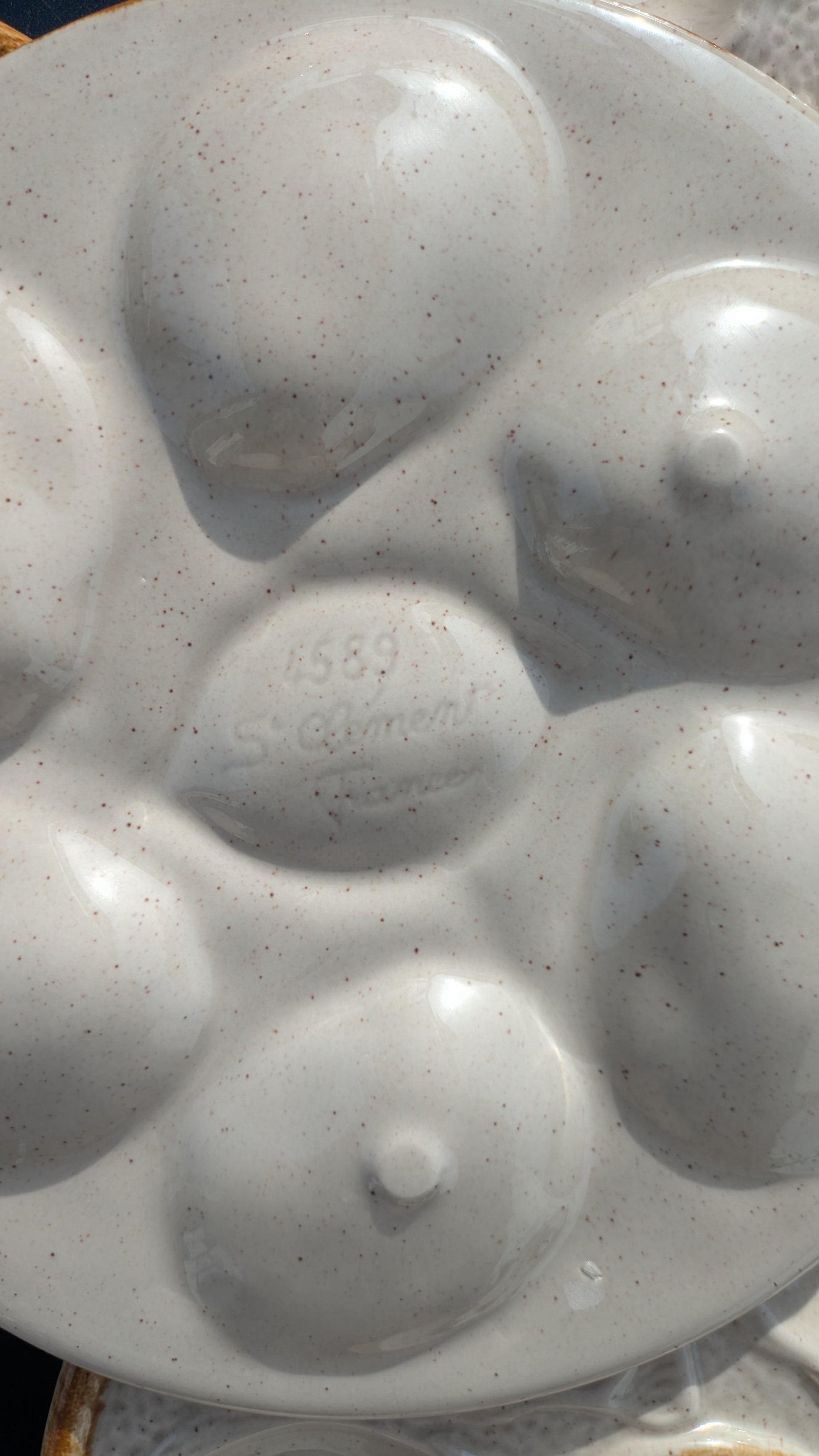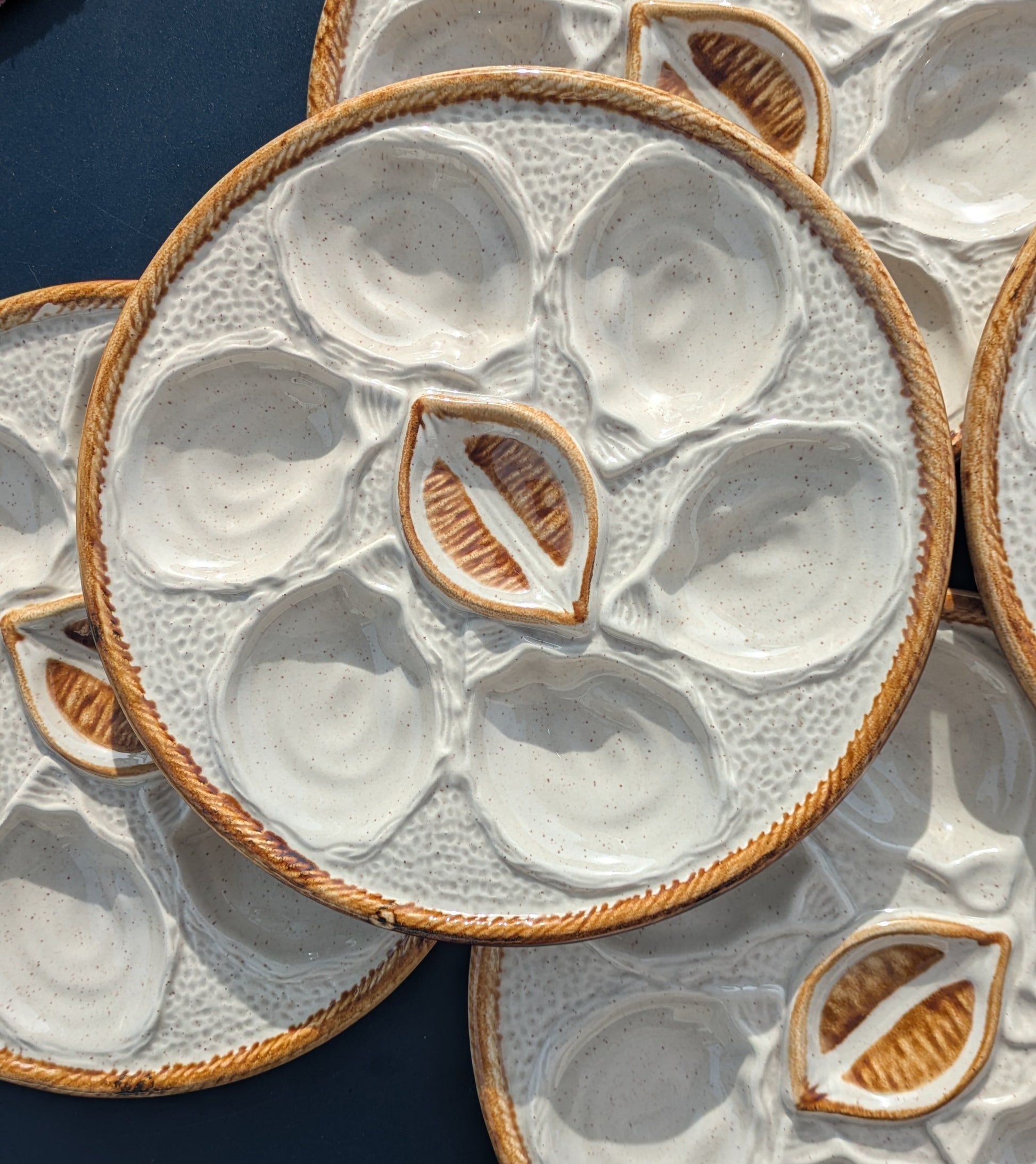 6 assiettes à huîtres vintage St Clément, bon état général. A noter une assiette a un petit défaut, voir derrière photo.