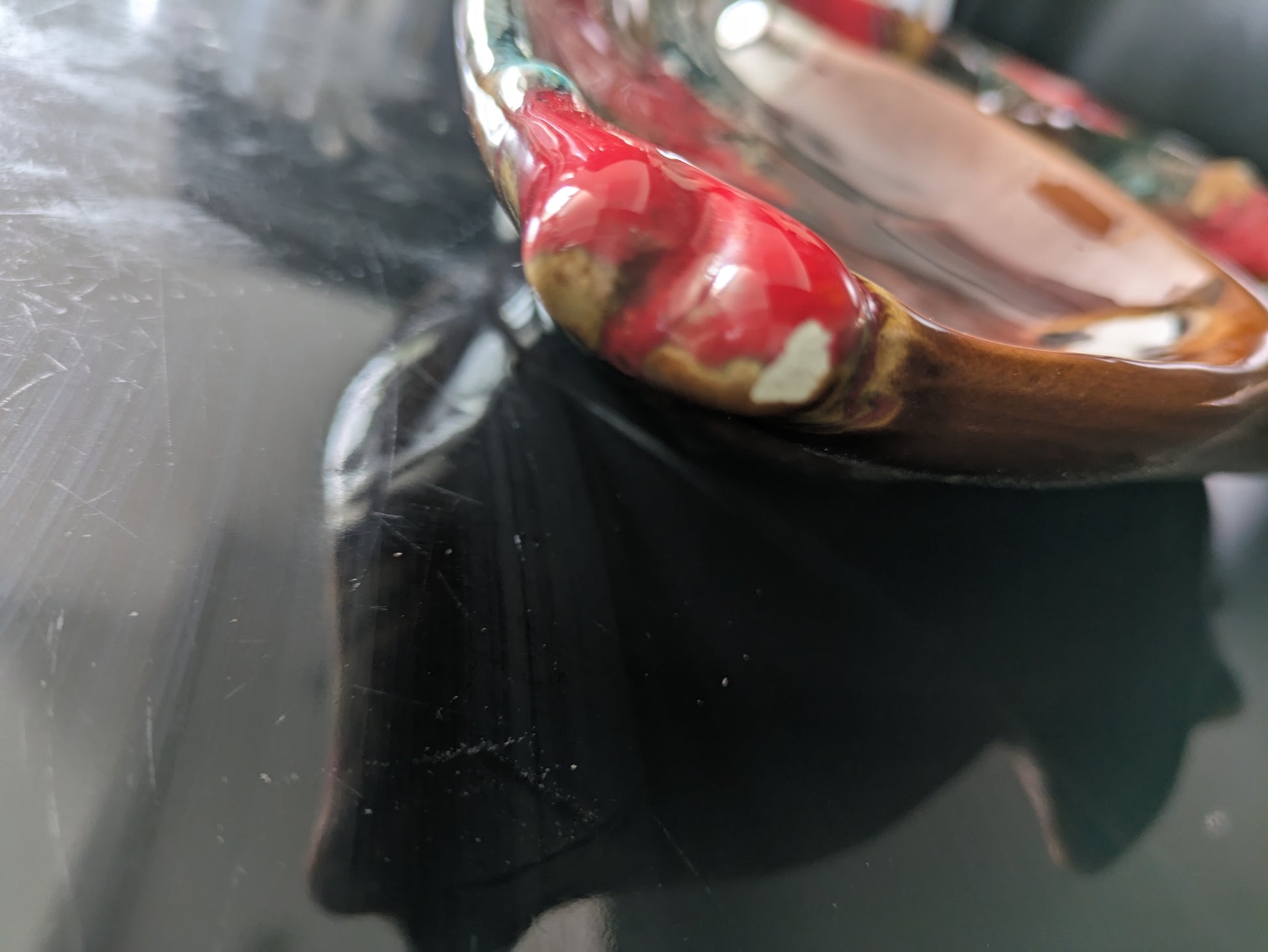 Large fish-shaped compartmented dish, Vallauris style, some small losses, see photo.