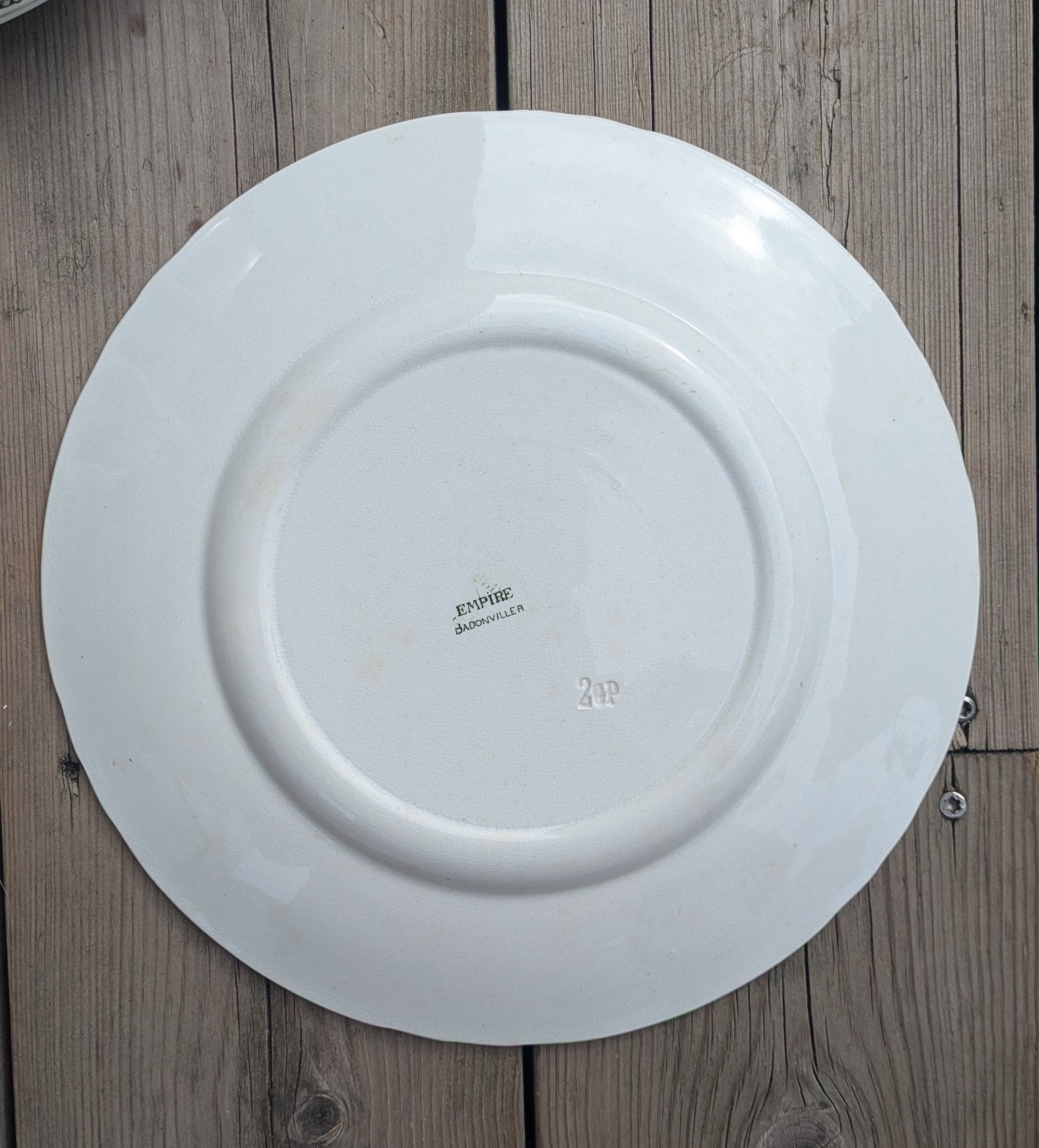 Lot de 4 Grandes Assiettes Plates Badonviller - Modèle Empire Terre de Fer Vert/Blanc