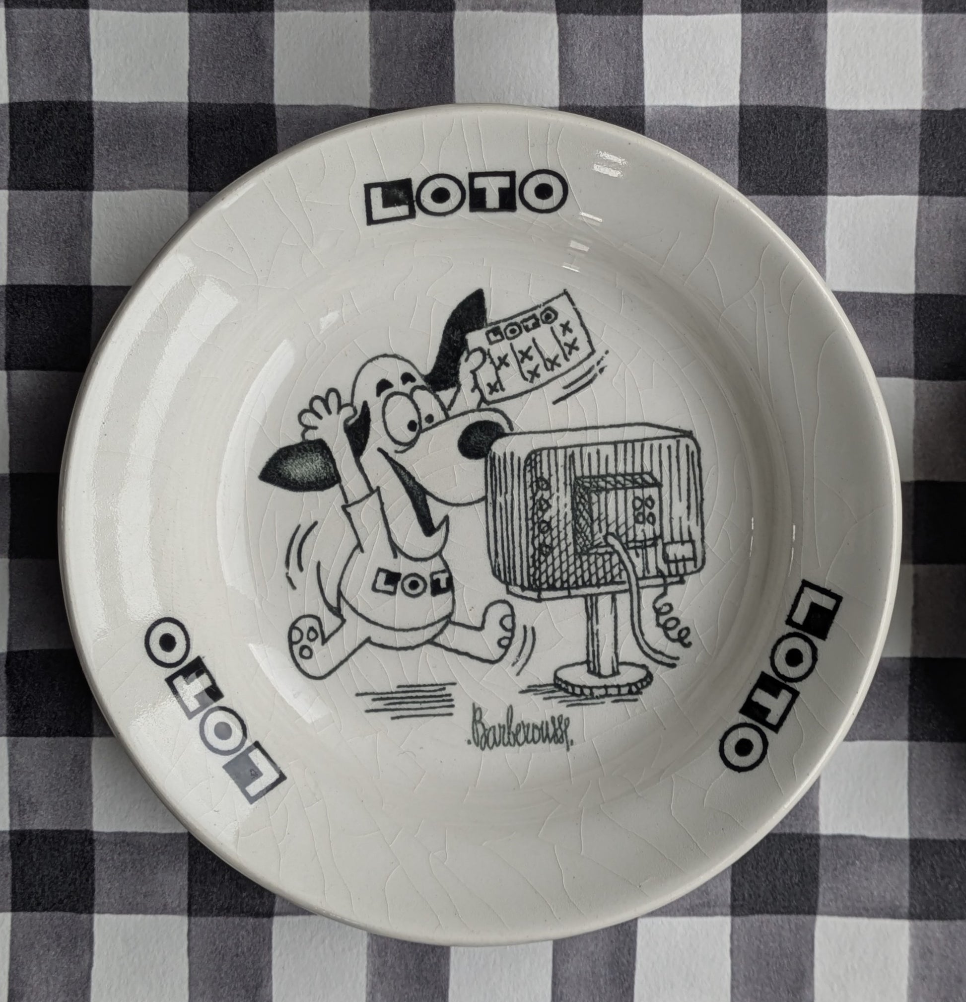 Un Artiste Culte : Le style humoristique et reconnaissable de Barberousse confère une valeur artistique et historique à cet objet. Le motif du chien joyeux avec son billet de Loto est iconique.