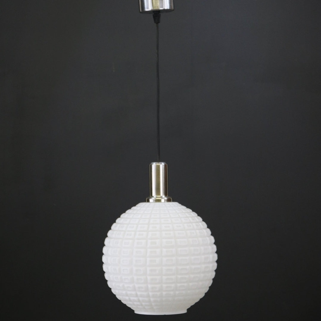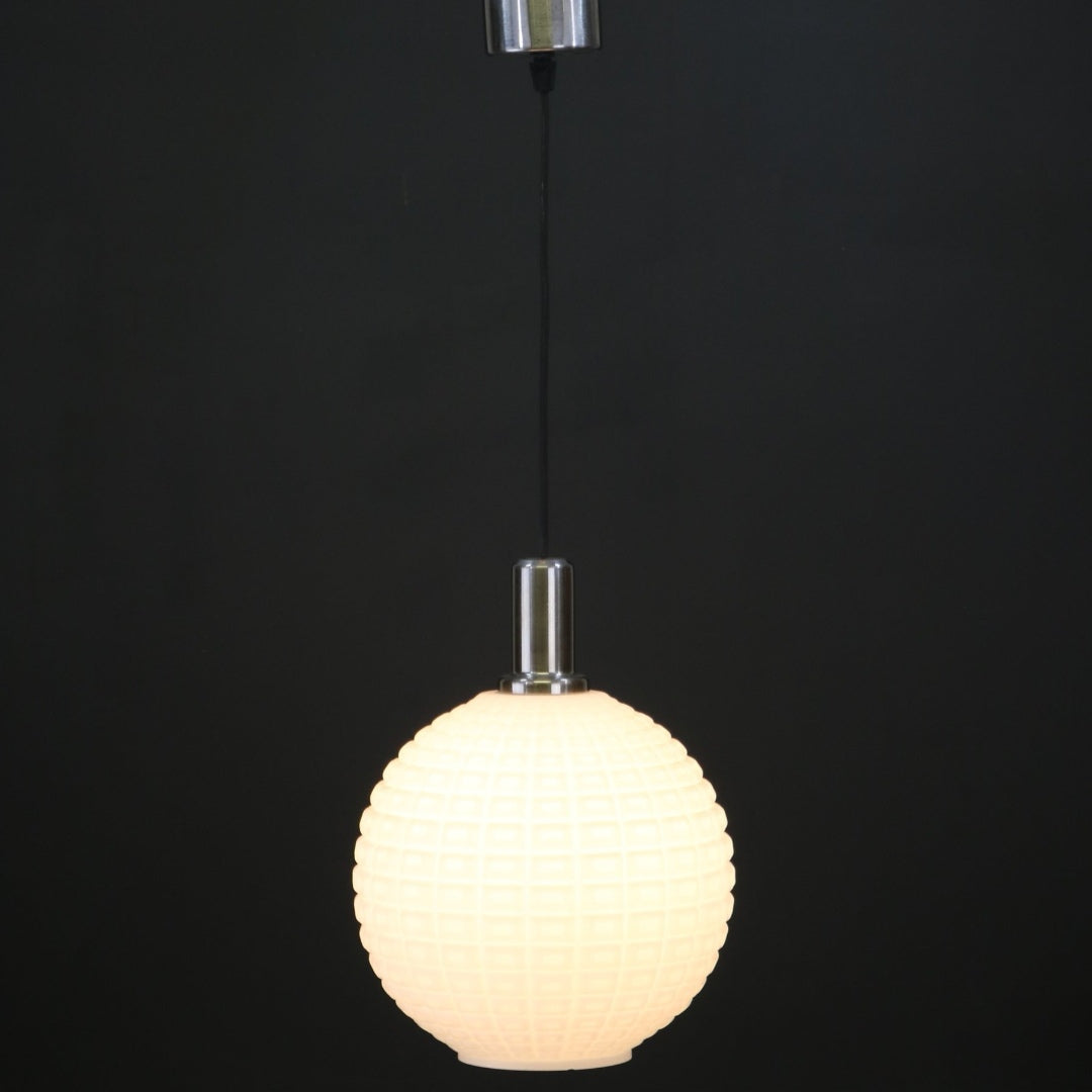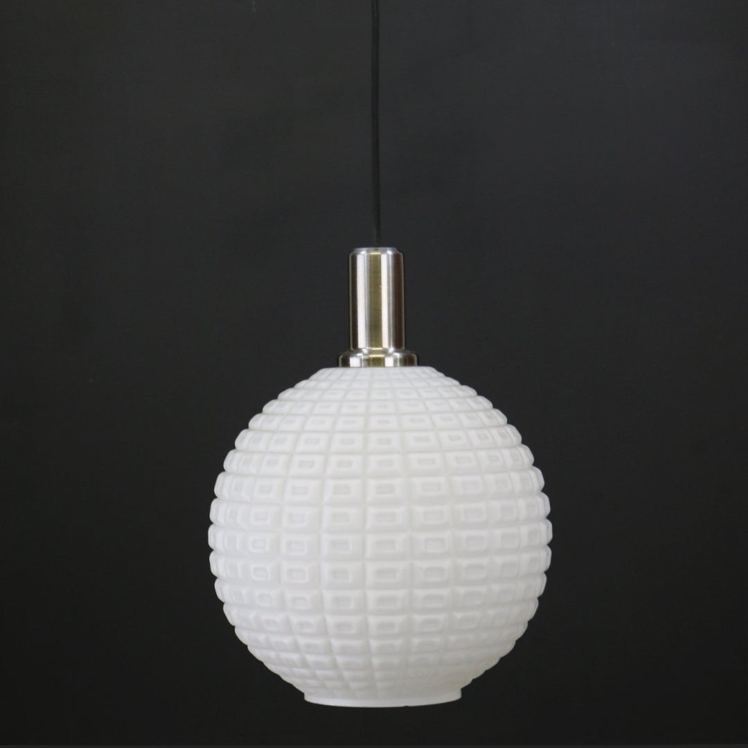 Magnificent opaline sphere pendant light from the 70s. In beautiful condition. Dimensions 32cm x25cmx25cm