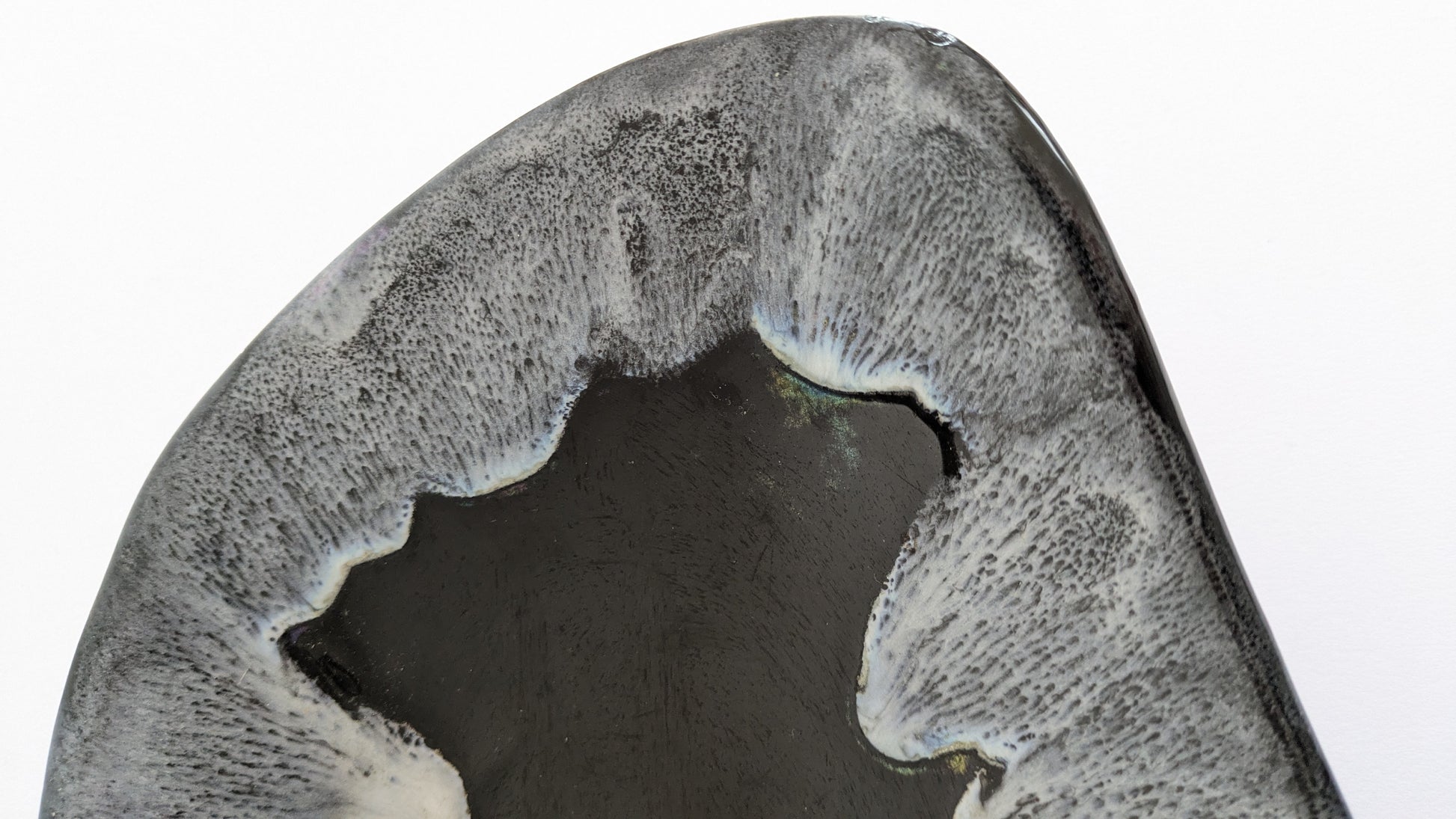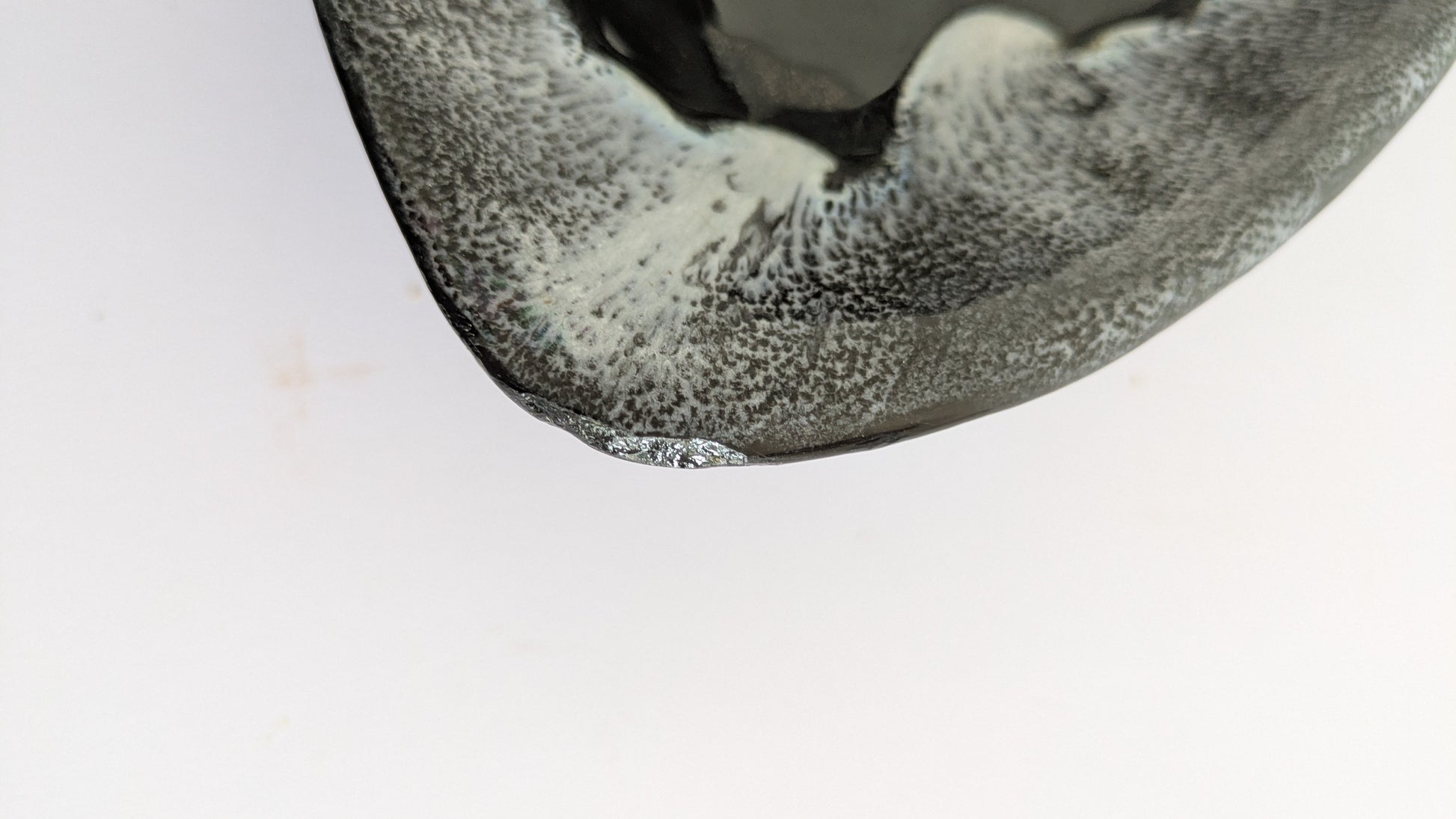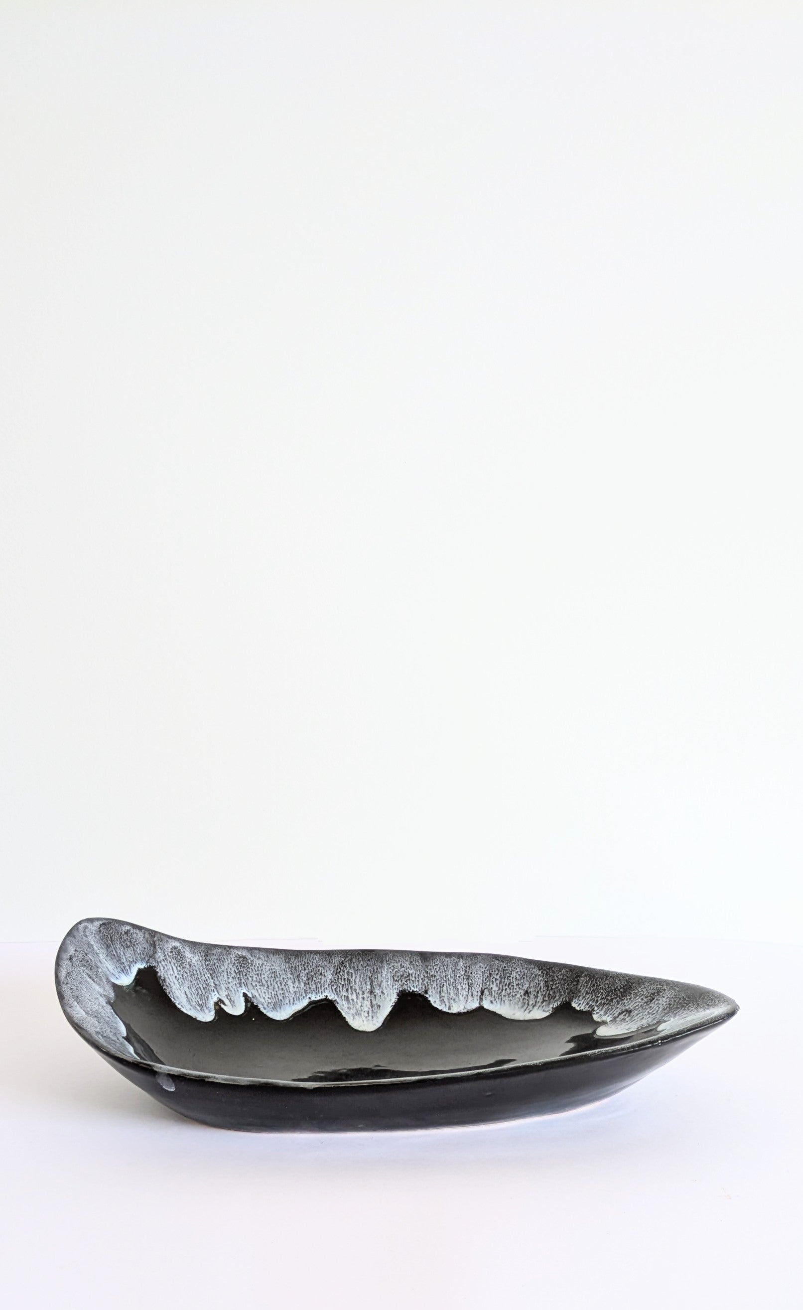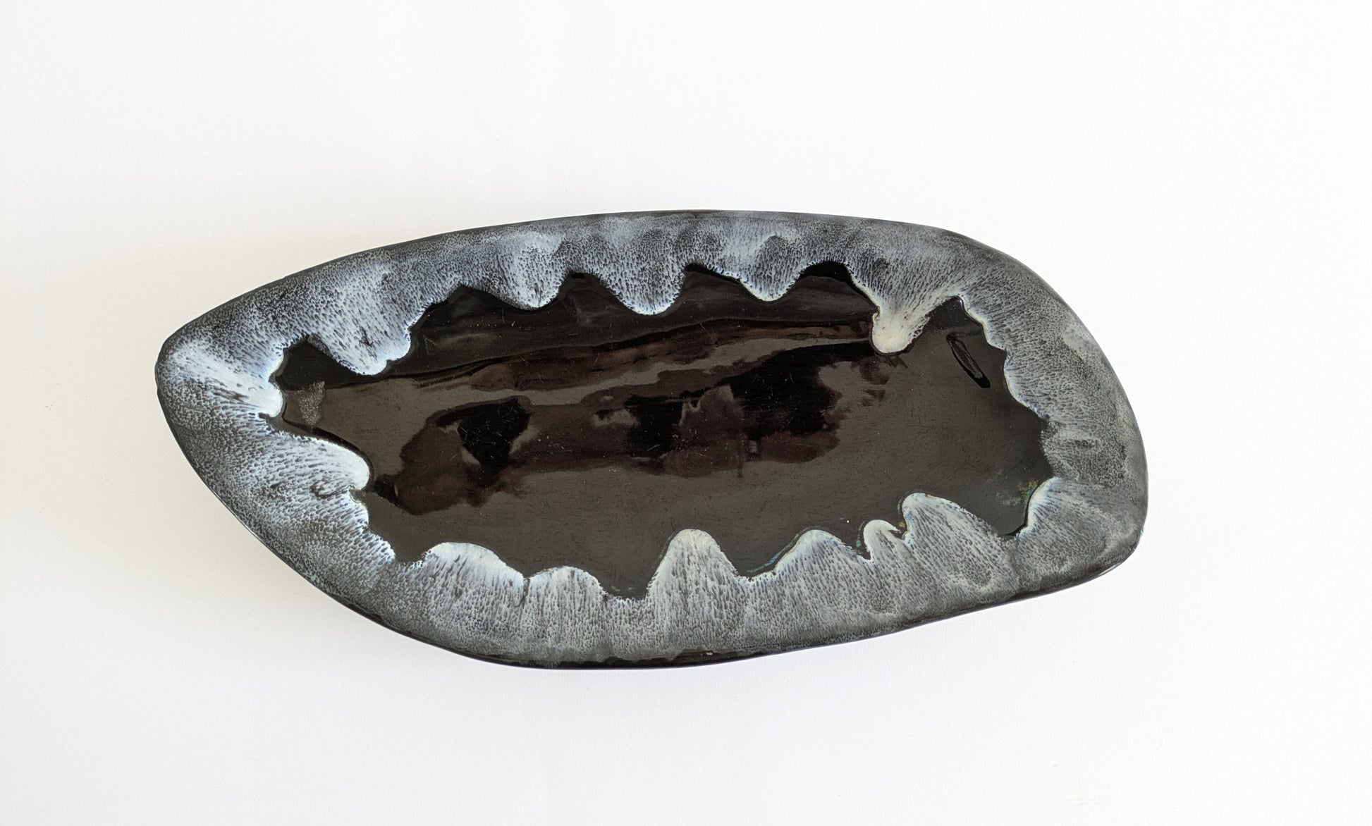Grand plat style Vallauris effet écume de mer, bon état général, à noter des éclats en bouts de plats. Voir photos.