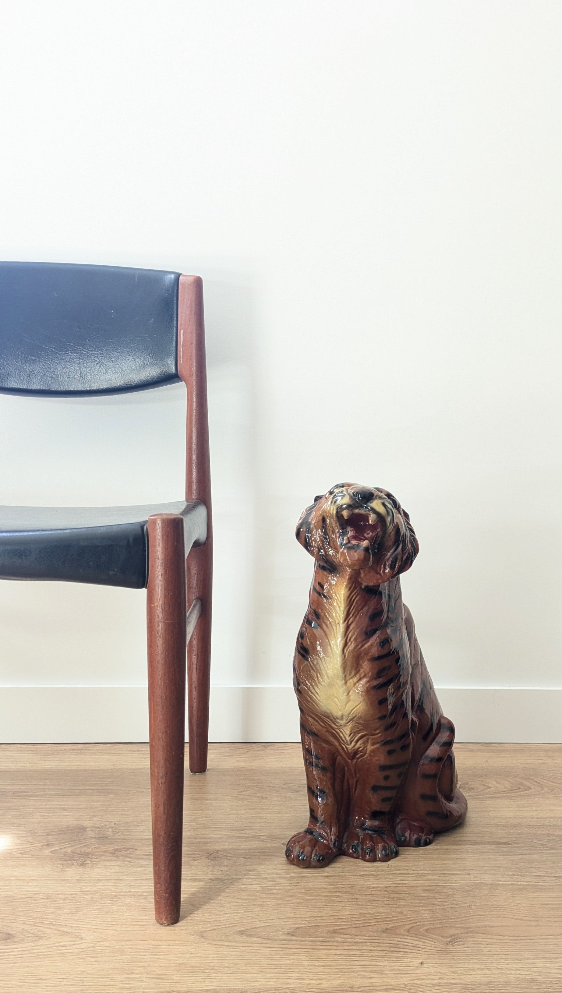 Tigre vintage en céramique, crocs intacts, pas d'éclats. fabriqué en plein, assez lourd.