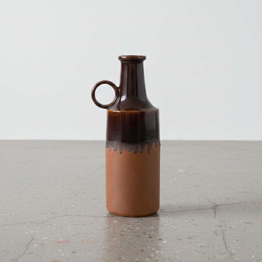 Finition : Dégradé de glaçure "Drip Glaze" brun chocolat sur corps en grès naturel texturé.